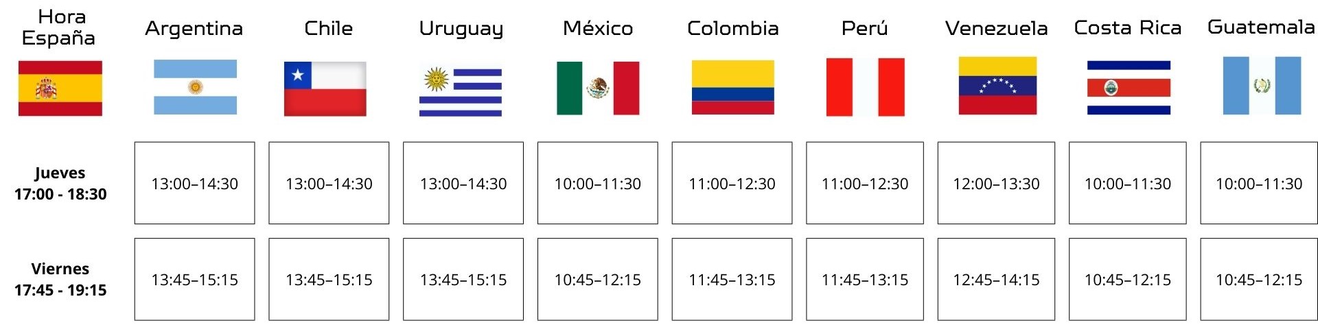 Aquí se muestra una tabla de conversión horaria para los países latinoamericanos donde poder consultar la hora respecto a la de España.